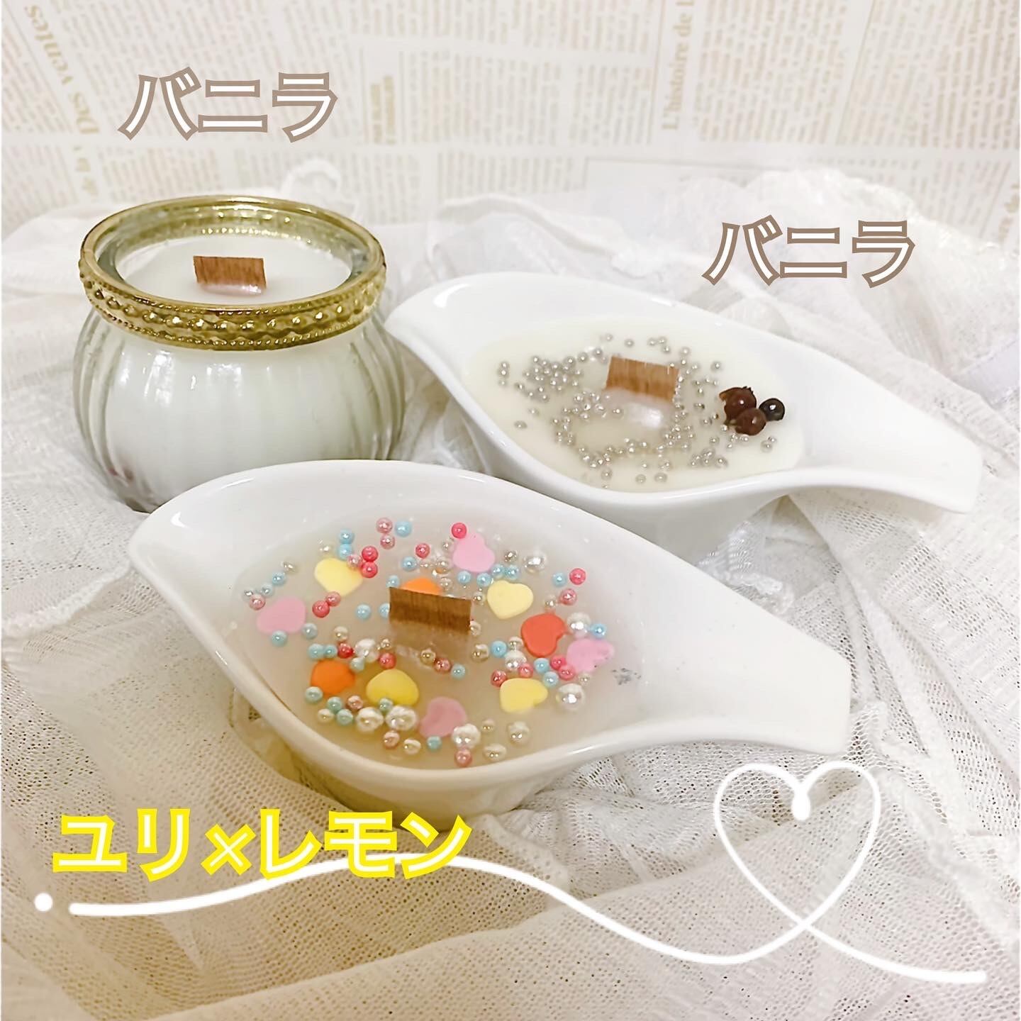 プチアロマキャンドル3点セット【2つの香り】バニラ/ユリ×レモン*ハンドメイド*