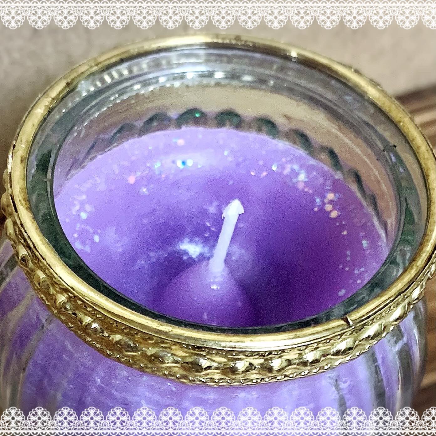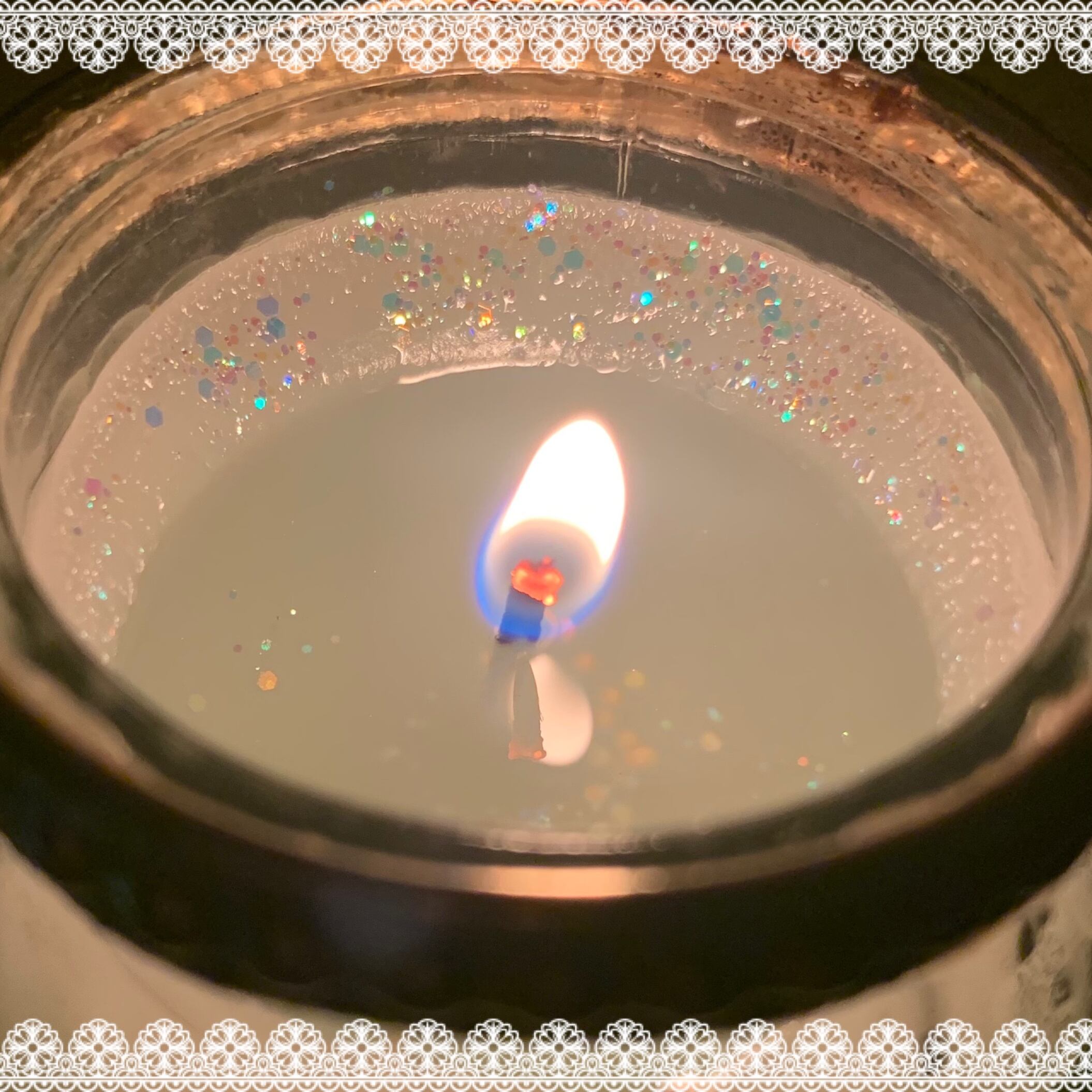 全てのふちにラメを施してあるので、火を灯すとキラキラ光ります。