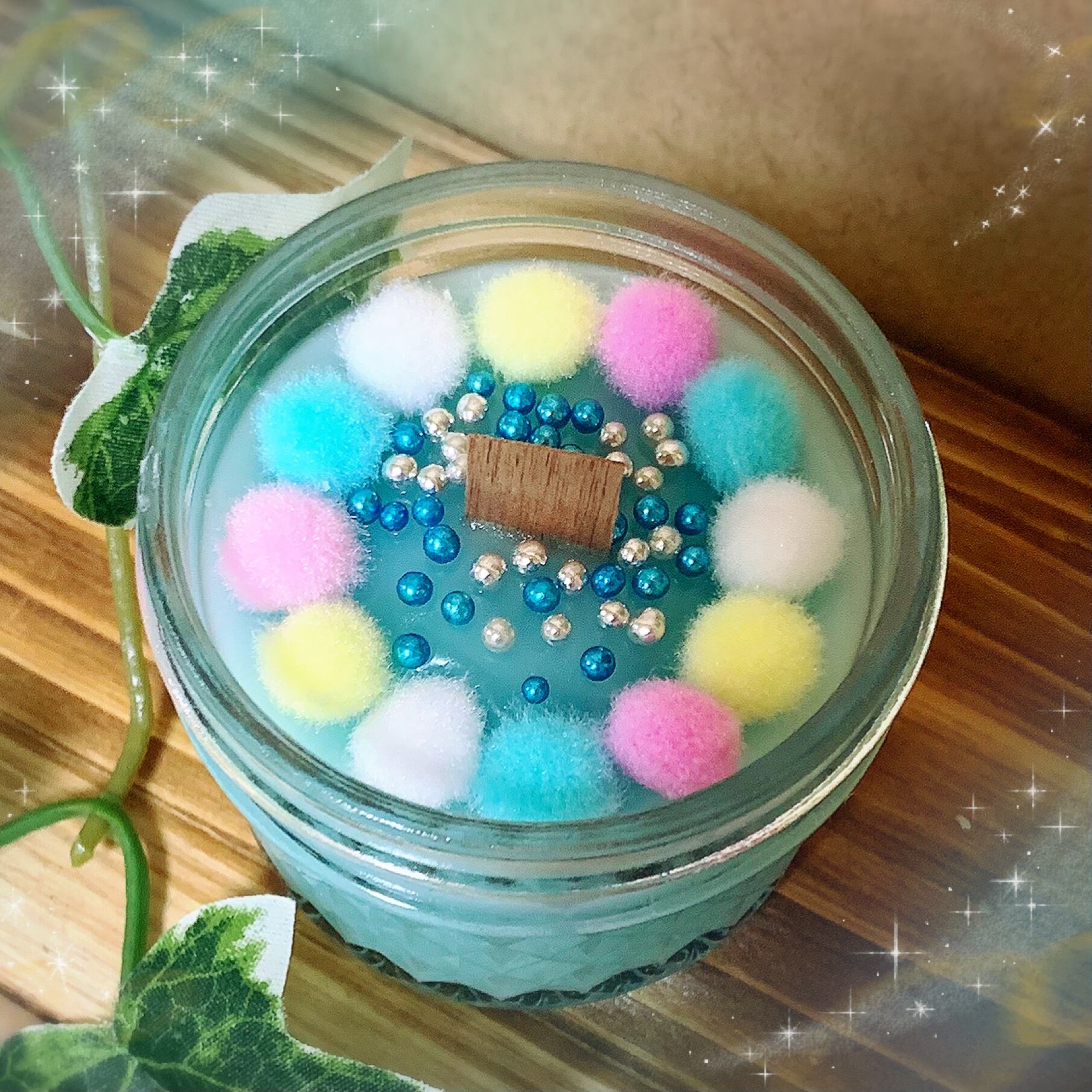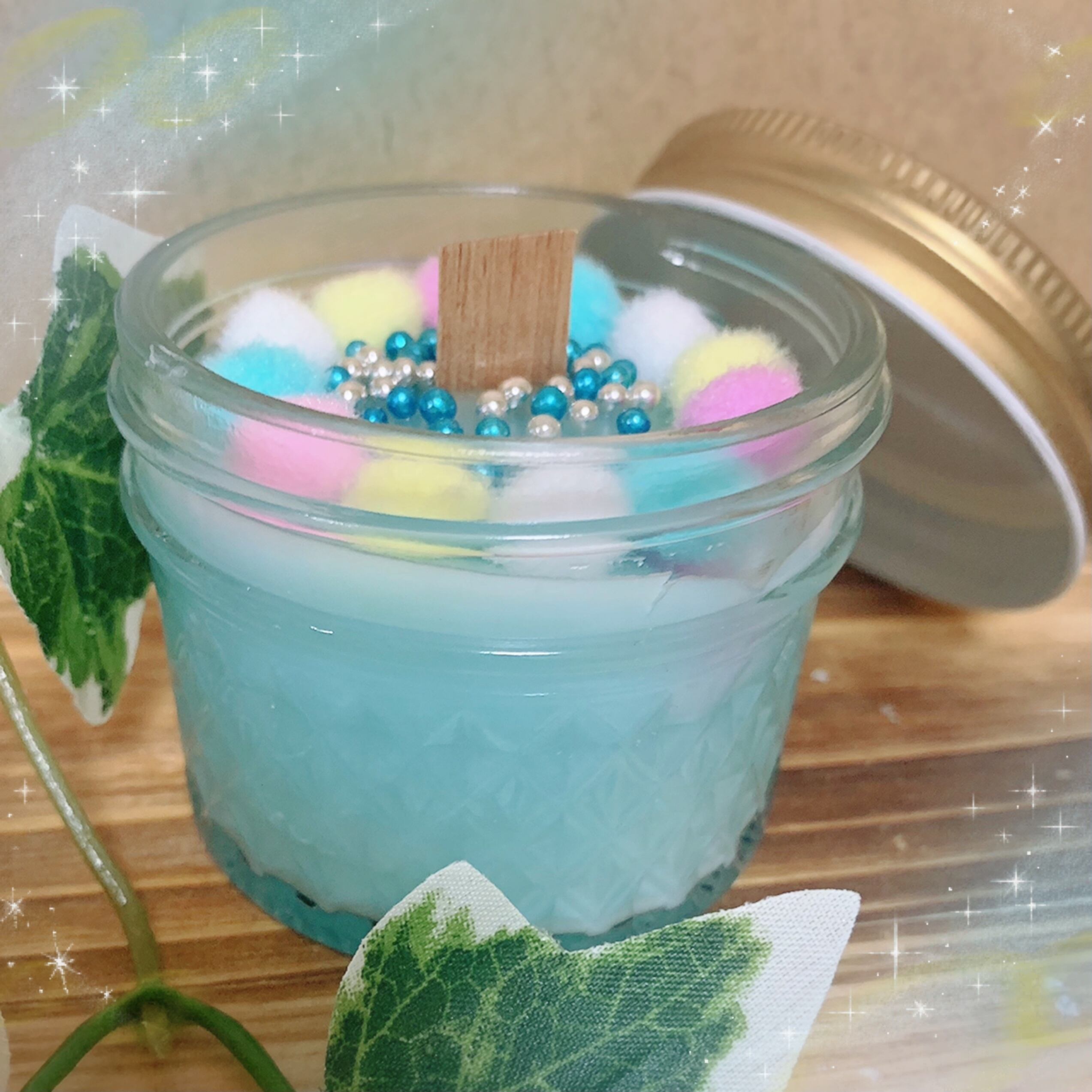 青がベースのミニキャンドル☽・:*ユリ×レモンの香り☽・:*