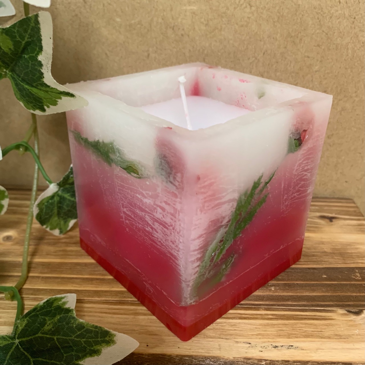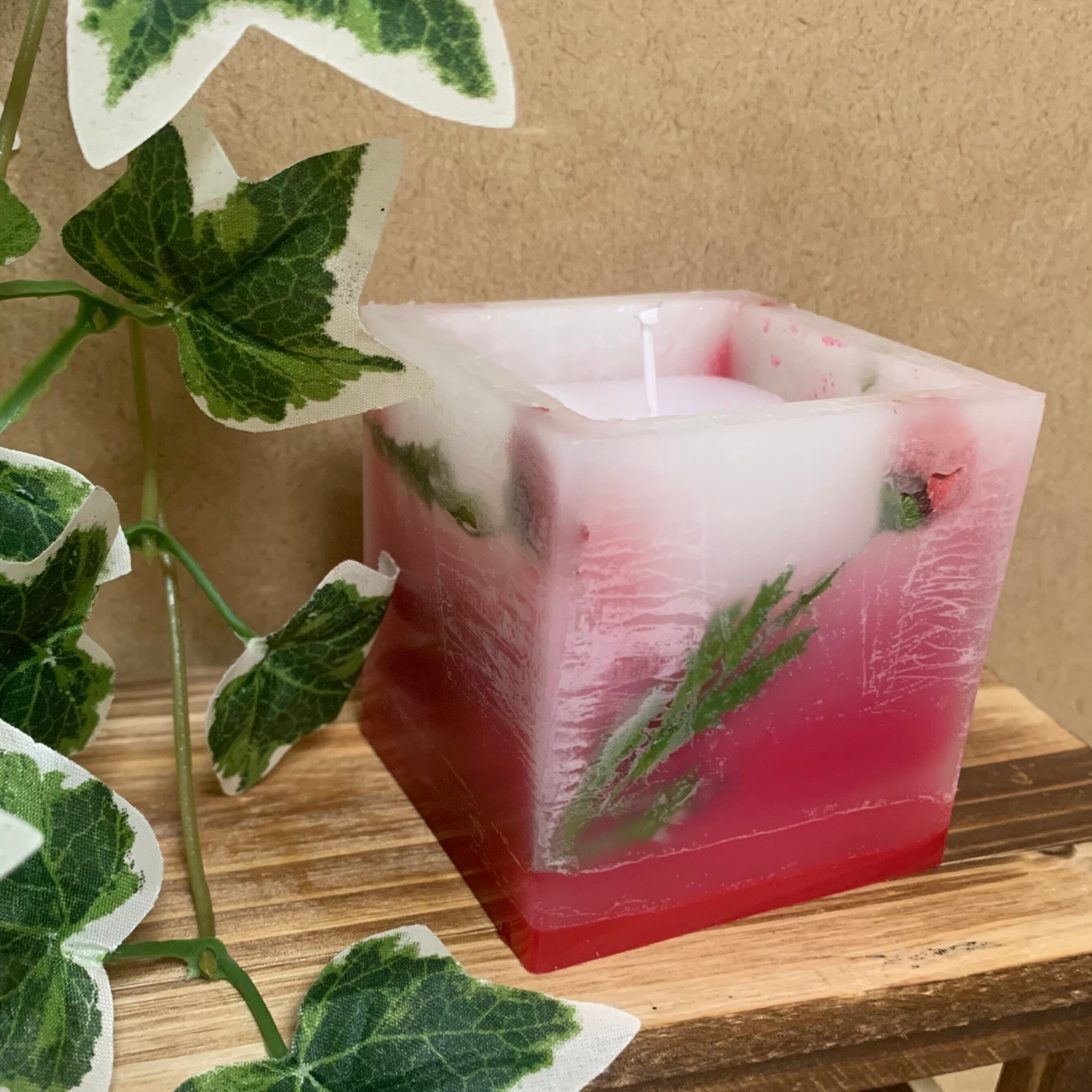 【訳あり】ビビットなレッドが際立つボタニカルキャンドル☽・:*