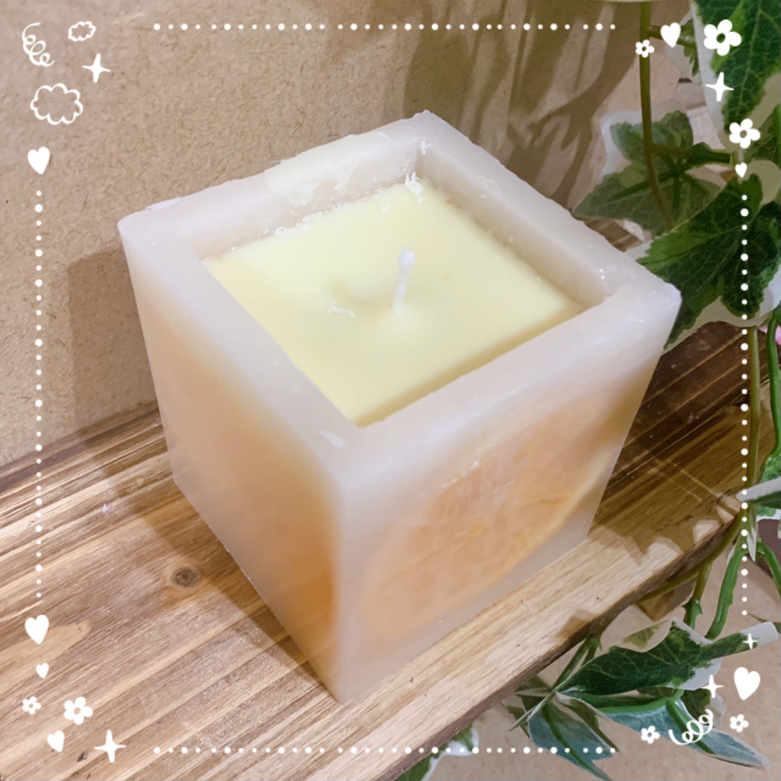見えにくいですが、スライスオレンジが入っているので、火を灯すと透けて綺麗に見えます♥