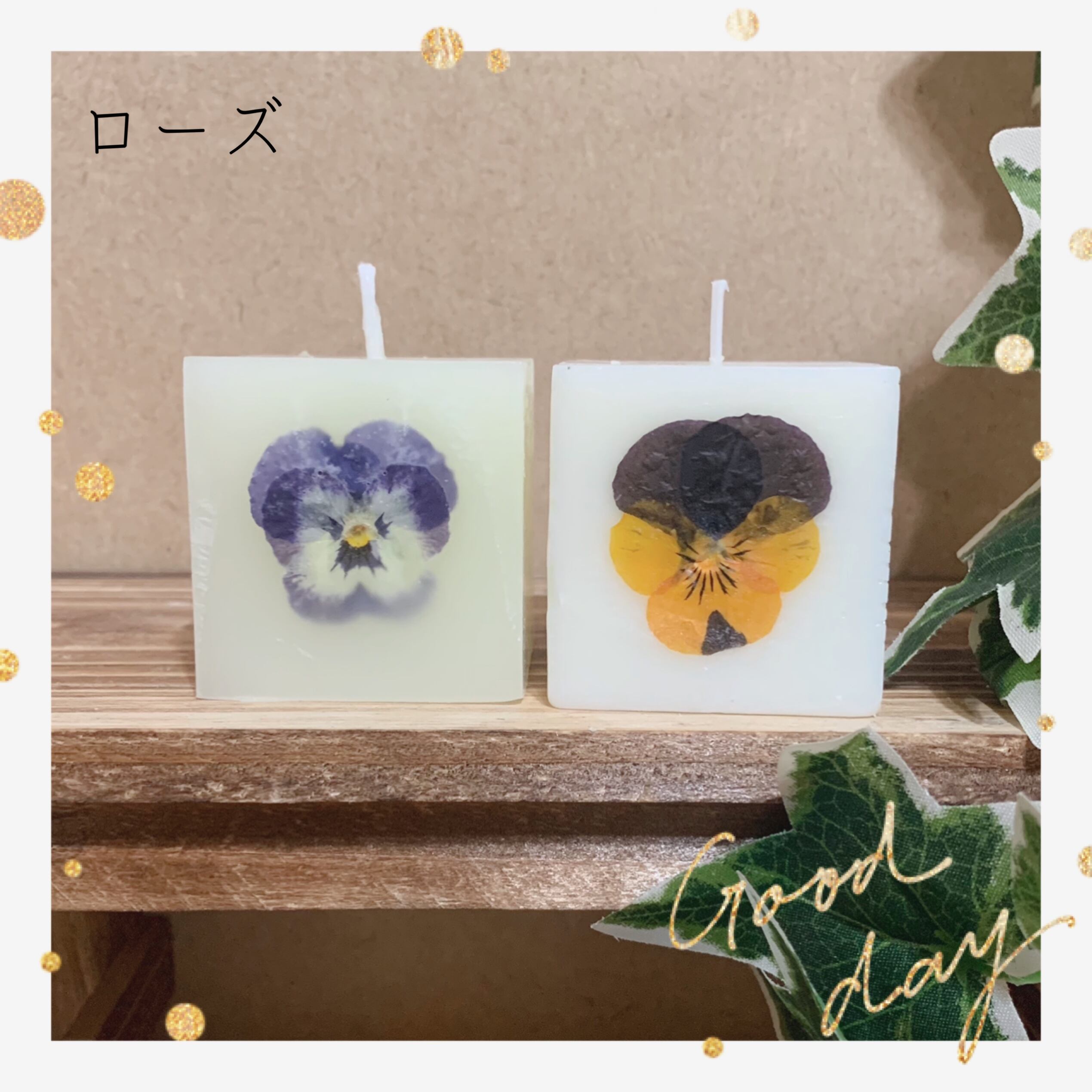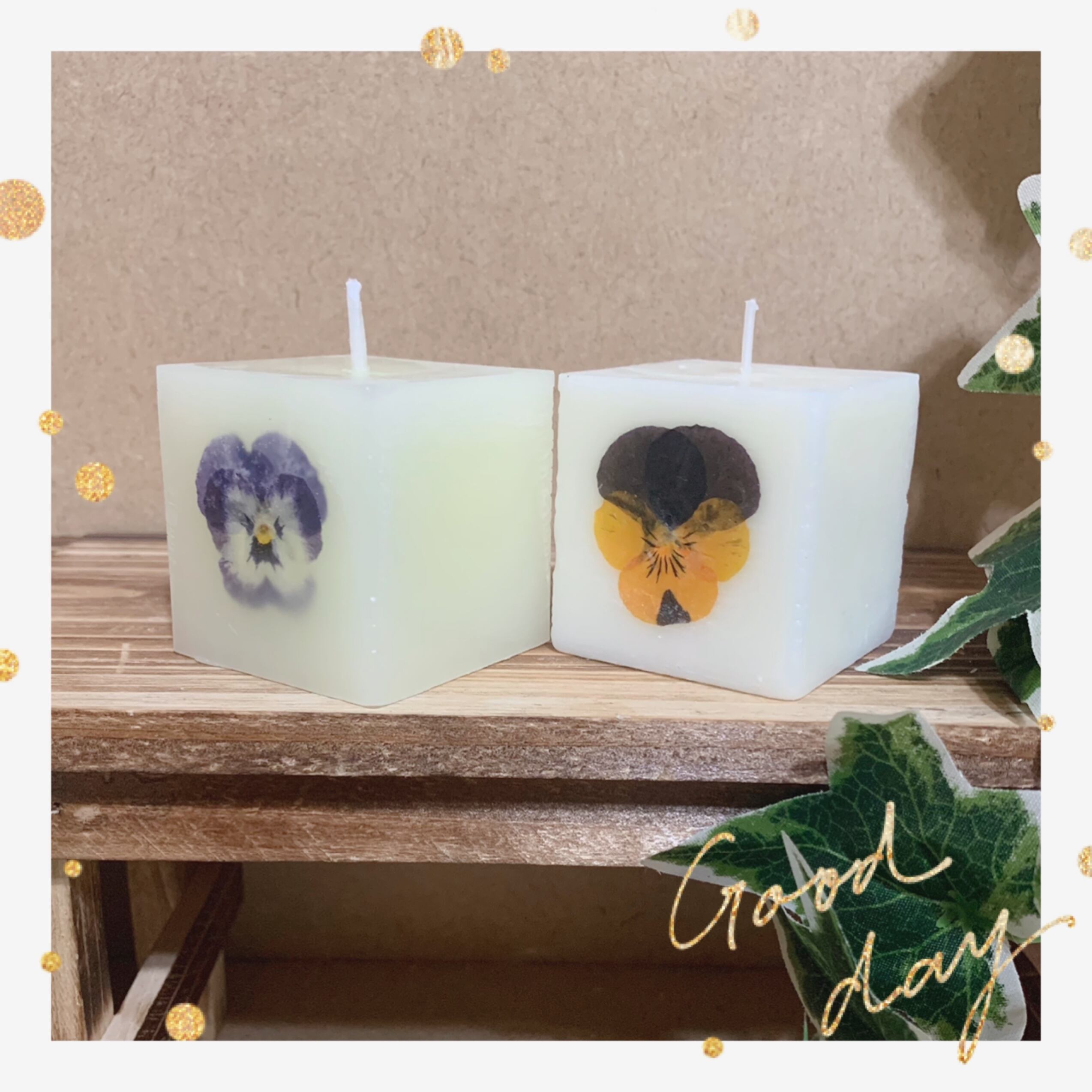 【2個セット】手軽に楽しめる4.5×4.5サイズのボタニカルキャンドルです♥